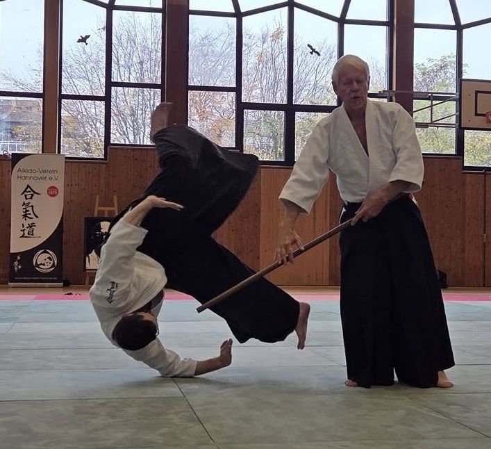Rund fünfzig Aikidoka aus dem mittleren und nördlichen Deutschland fanden sich am Wochenende des 8. und 9. Novembers 2025 zum Bundeslehrgang mit Alfred Heymann (8. Dan, TK-Mitglied) beim Aikido-Verein Hannover ein. „Die Sonne ist da, aber etwas steht davor.“ – mit diesen Worten kommentierte Alfred das ideale Hallenwetter an diesem trüben und bewölkten Novemberwochenende.
